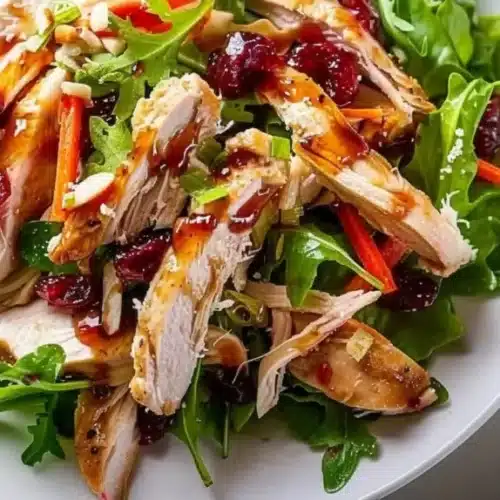 Healthy and Nutritious: Packed with protein from the chicken, fiber from the cranberries and greens, and healthy fats from the almonds, this salad is a wholesome choice for a balanced meal.