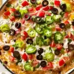 A: Yes! Ground beef or shredded chicken can be added as a layer for a heartier version. Just make sure it’s cooked and seasoned beforehand.