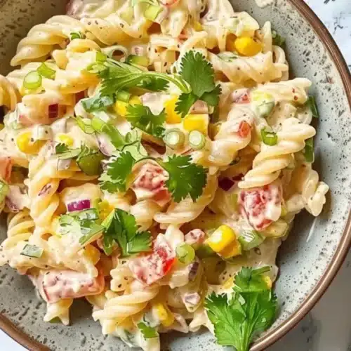 The beautiful colors and creamy texture make this pasta salad an instant hit.- Pro Tip: Garnish with extra cilantro or a sprinkle of chili powder right before serving for additional flair.
