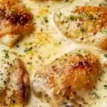 Are you tired of the same old chicken recipes? Do you crave something rich, creamy, and comforting? Introducing Creamy Oven Baked Chicken Thighs! This mouthwatering dish features succulent chicken thigh meat enveloped in a garlic-infused cream sauce, complemented perfectly by the nutty flavor of Parmesan cheese. It’s an enticing blend of flavors and textures, creating an unforgettable dining experience. This isn’t just another chicken recipe; it’s destined to become your new favorite, ideal for impressing guests or savoring a cozy weeknight dinner.