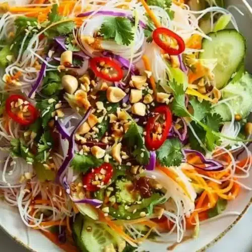 - For a Grain-Loaded Bowl: Swap rice noodles for cooked quinoa or brown rice to add fiber and make this salad even more filling.