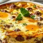 Start your morning (or any-time brunch) with something warm, comforting, and utterly satisfying: a Sausage and Egg Casserole that’s savory, soft, and cheesy. This one-dish bake marries browned sausage with cubed bread soaked in a seasoned egg-and-milk custard, finished with melty cheese on top. The texture is custardy in the middle, lightly golden at the edges, and perfect for feeding a crowd or prepping ahead for busy mornings. In this post you’ll get the full recipe, why it works, helpful swaps, storage and reheating tips, plus creative serving ideas so this becomes a staple in your meal rotation.