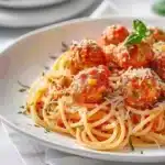 While the meatballs are searing, bring a pot of salted water to a boil. Cook the spaghetti according to the package instructions until it’s al dente. One vital tip is to reserve at least 1 cup of the pasta water before draining—this starchy water can help adjust the sauce’s consistency later.