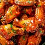 Pour the sauce mixture over the chicken wings, making sure they are evenly coated.