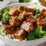 Serve: Spoon the glazed tofu over a bed of cooked rice or quinoa. Top with broccoli, sprinkle with sesame seeds and sliced scallions for that final garnish!